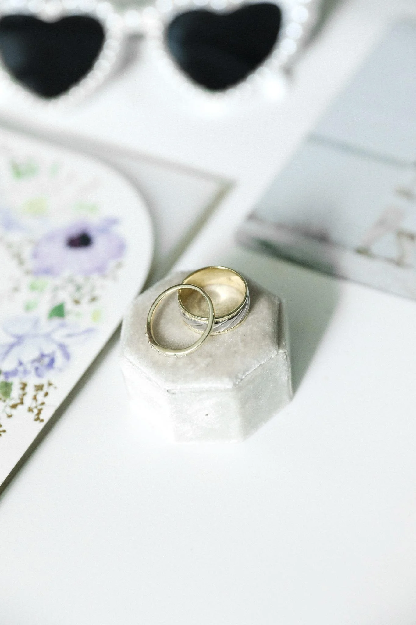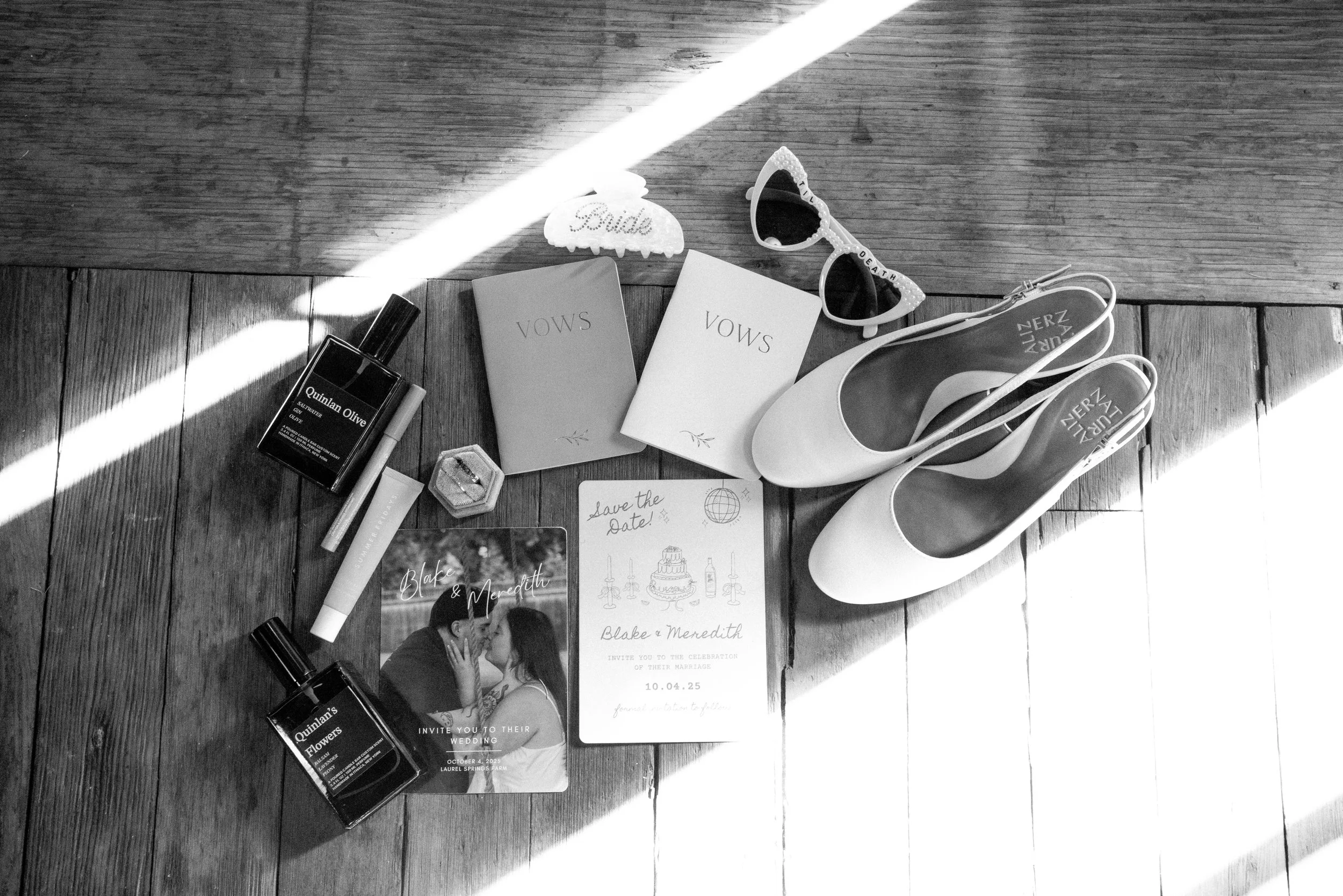 I recommend couples put things in a box that they would like to add to their flat lay. Flat lays take about 15-20 minutes to make & take photos of. I usually take these photos before getting ready photos or before the ceremony.